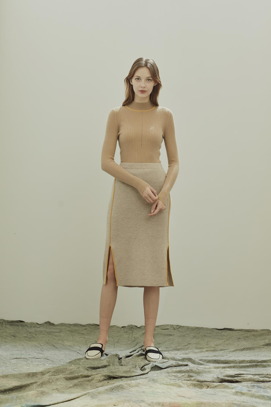 Stocking-stitch polo neck jumper featuring a mix of structures. Fitted silhouette decorated with a contrasting stripe around the neck.