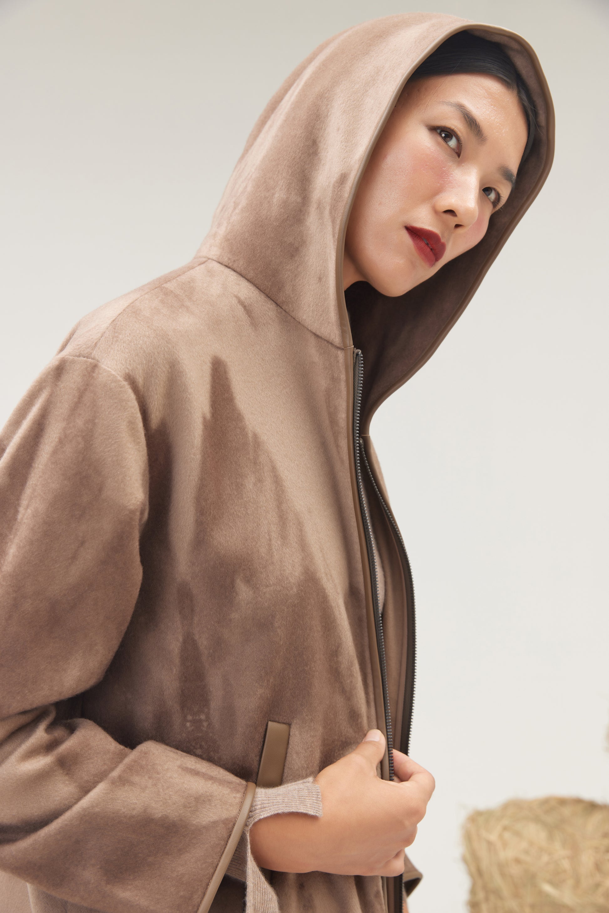 Indulge in the luxury of our 100% pure cashmere burnoose. Featuring a striking mountain print, this wild and elegant piece exudes a bohemian spirit. The same captivating pattern is also available in coordinating wide-leg pants. Our cashmere is sourced from our own natural grazing lands in Mongolia, ensuring the highest quality and sustainability.