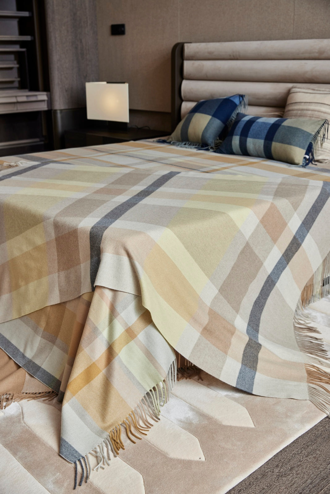 The high cashmere blanket with texture and tactile feel express the best ?of cashmere sourced from Sandriver family-owned steppe in Inner Mongolia,fabric using natural plant dyes ,it be environmental and health,the handfeel more fine and smooth,warm and soft.