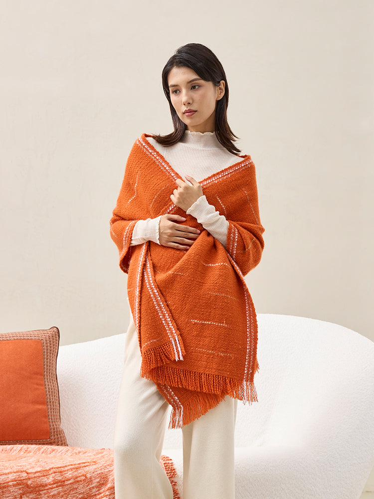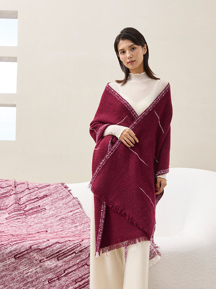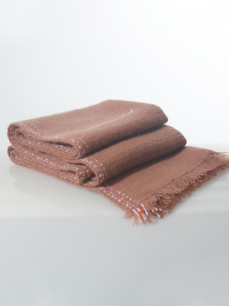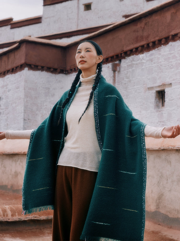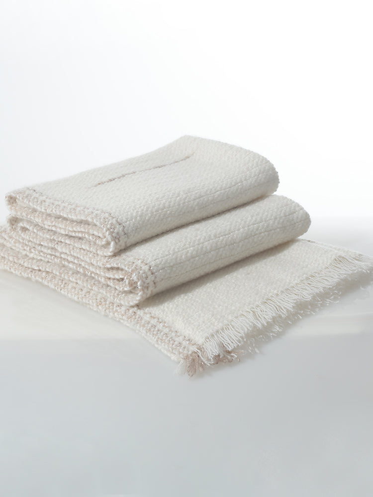 Through traditional Pulu craftsmanship, a 2000-years-old tech, the fabric achieves a lightweight yet resilient texture. The hand-twisted cashmere yarn creates a natural surface texture, delivering a warm and skin-friendly touch. Whether draped over the shoulders or laid across the knees, it offers a cloud-like comfort experience.