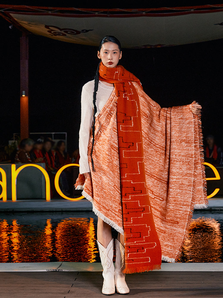 By integrating hand-twisted cashmere yarn with brocade techniques on Pulu fabric, this weaving method gives the textile a three-dimensional handmade texture and a dynamic aesthetic. The innovative fusion of these two ancient intangible cultural heritage crafts has revitalized traditional Pulu with renewed vitality.