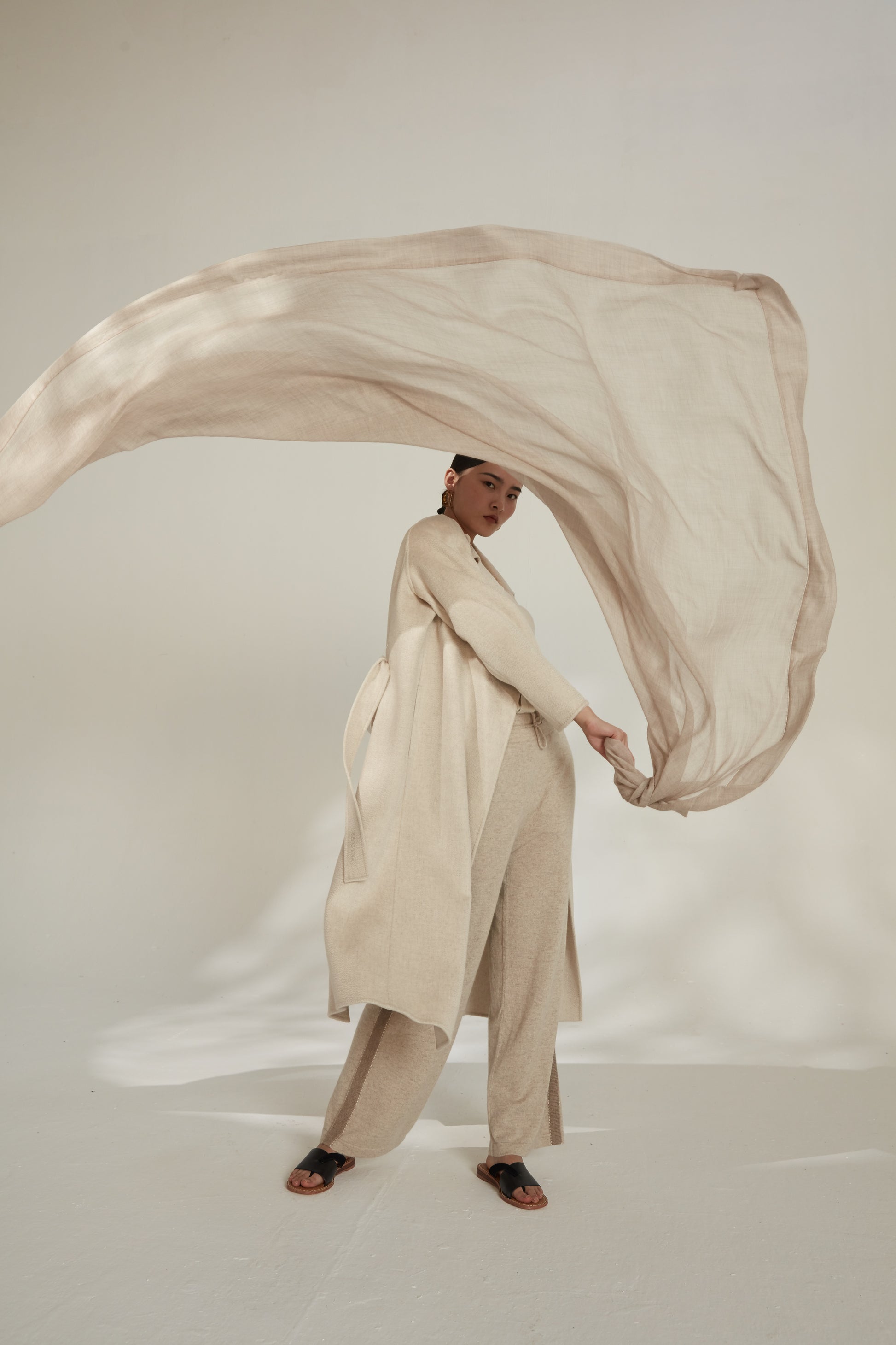 Find tranquility in the featherlight embrace of our Baby Cashmere Scarf. Part of our healing series, this exquisitely soft scarf features hand-frayed edges and is designed to provide a subtle layer of warmth and comfort, ideal for deepening your meditation and mindful moments.