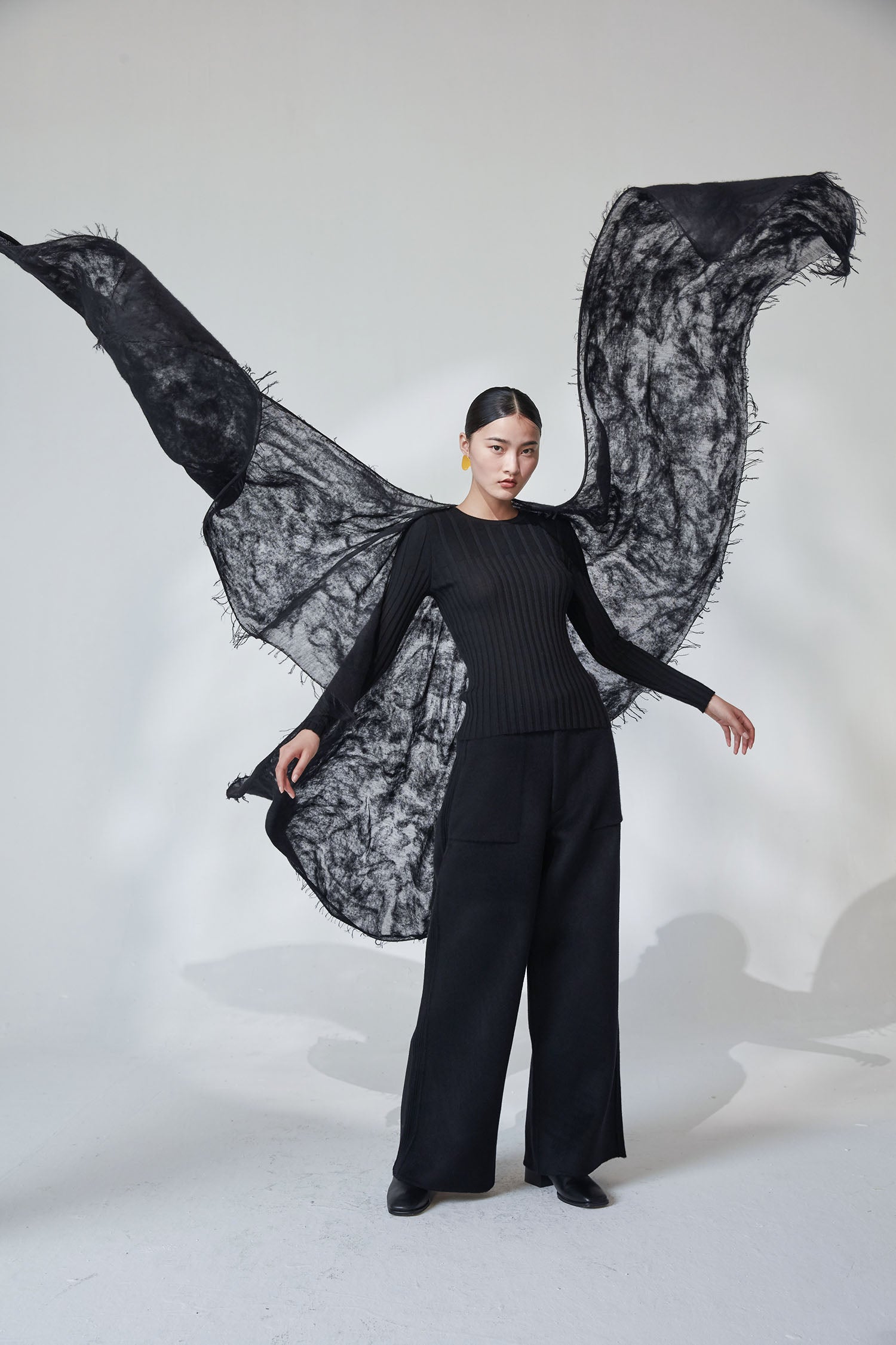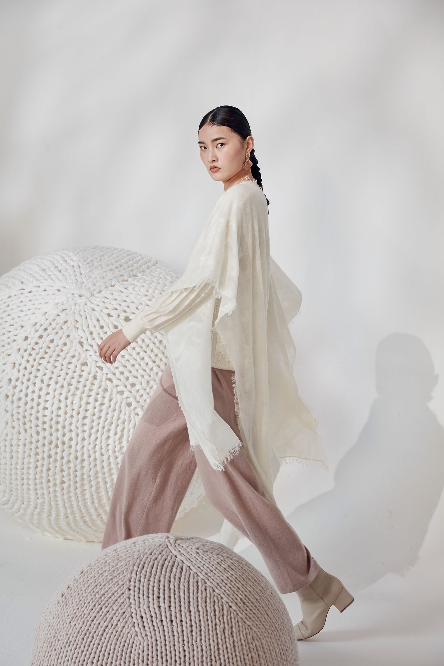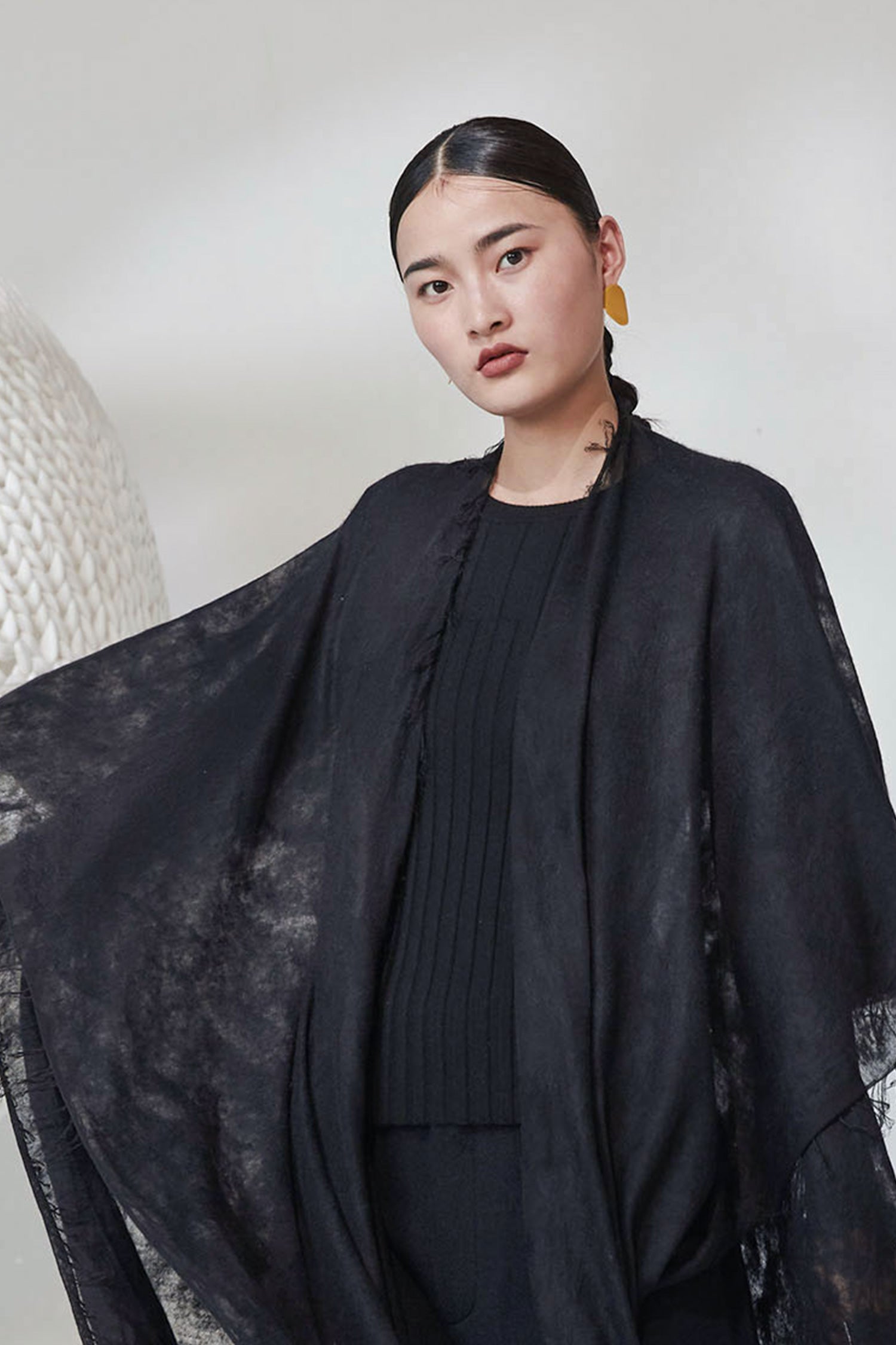 Super-fine knitted baby cashmere cloak with hand crafted felting, each piece is unique and exclusive.