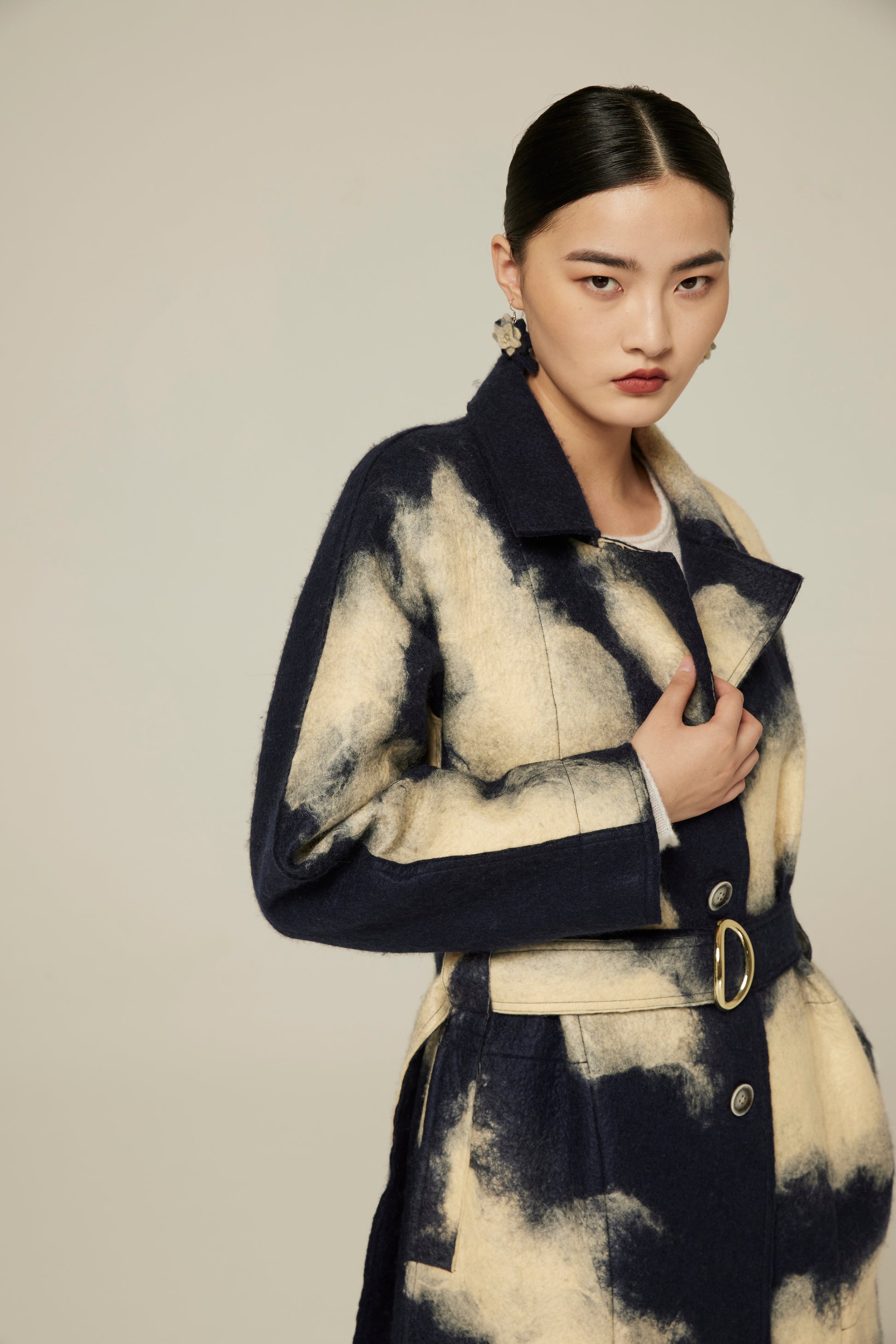 Handcrafted felt long-line coat