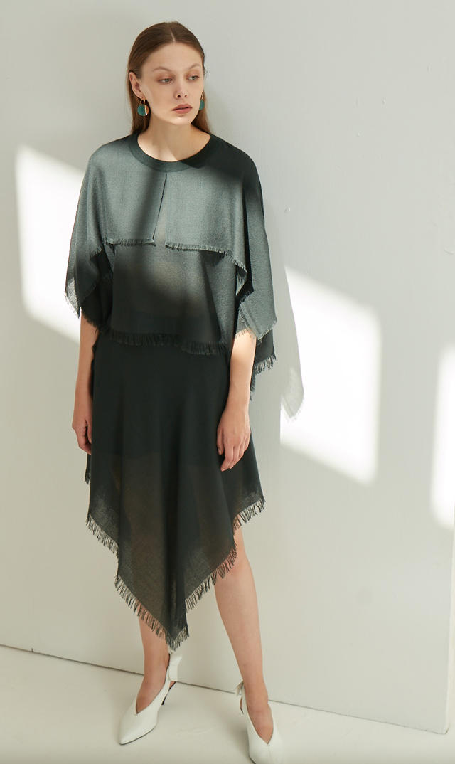 Ultra-thin cashmere midi skirt with decorative hand-sewn tassels and a flared silhouette. The cashmere material is from Sandriver's own Inner Mongolian pasture. The unique craftsmanship of worsted cashmere is comfortable and refreshing even in summer.