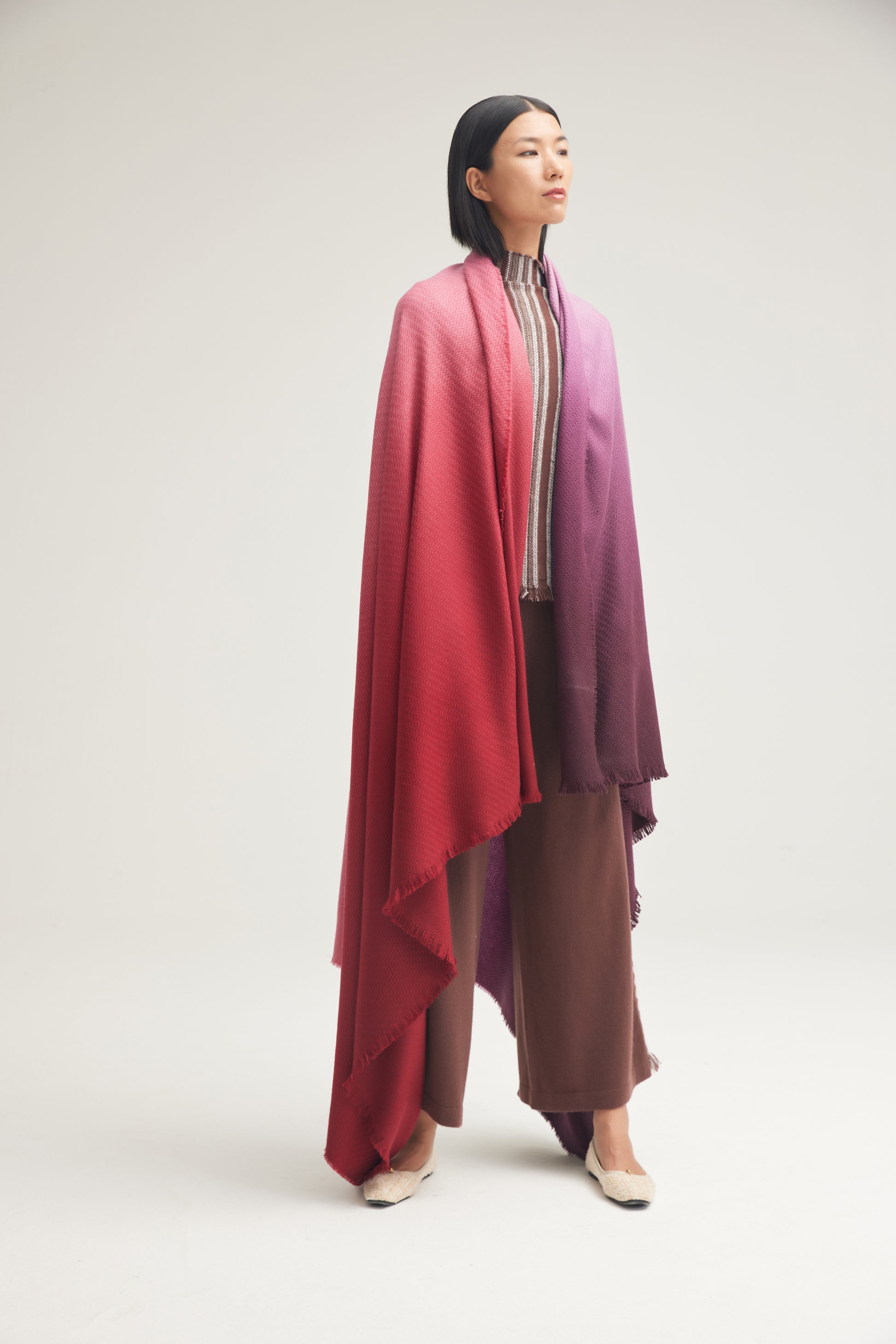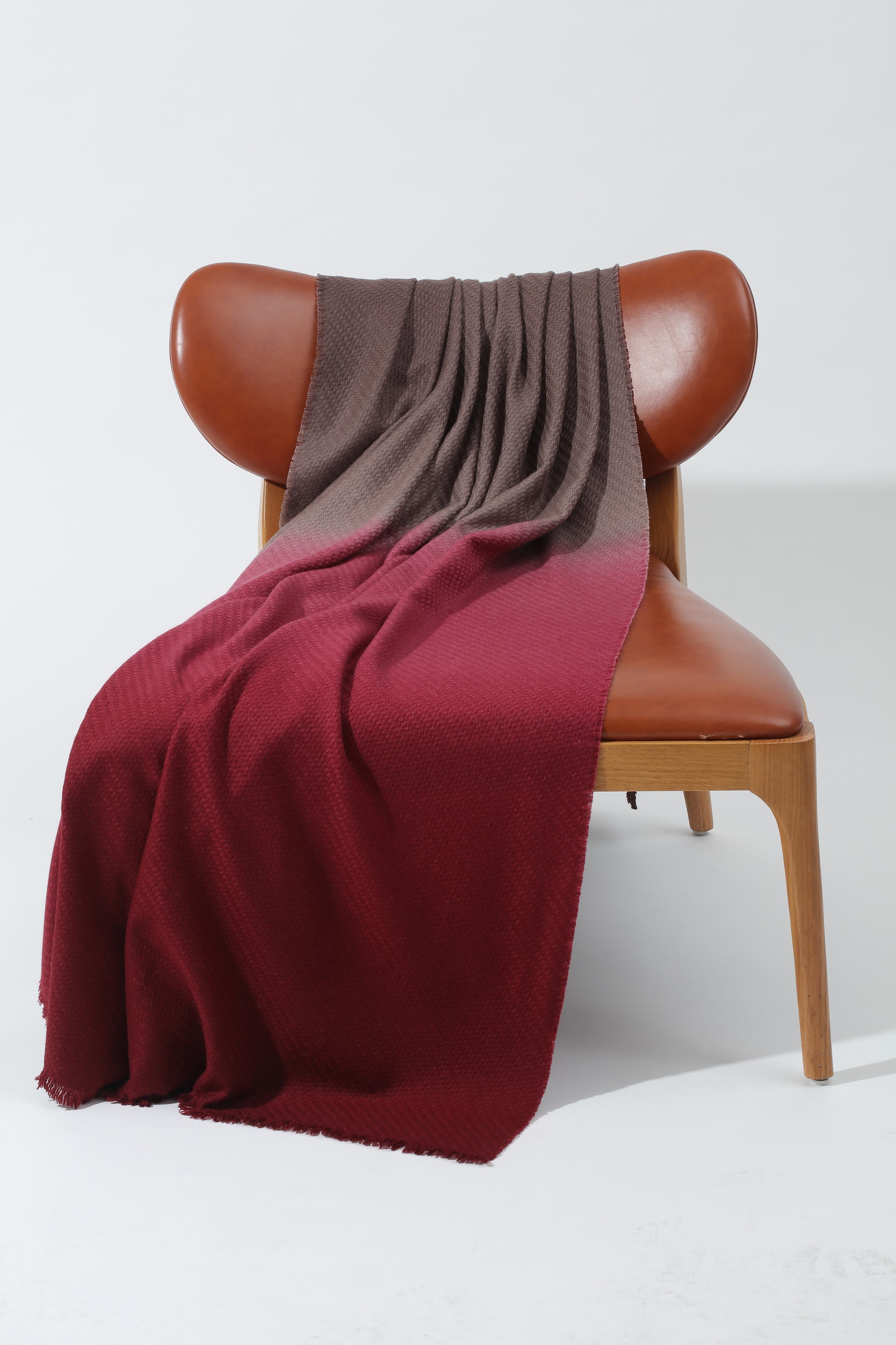 The hand-woven blanket, originating from an ancient tibet handcraft technique, 100% cashmere, dip dye design.