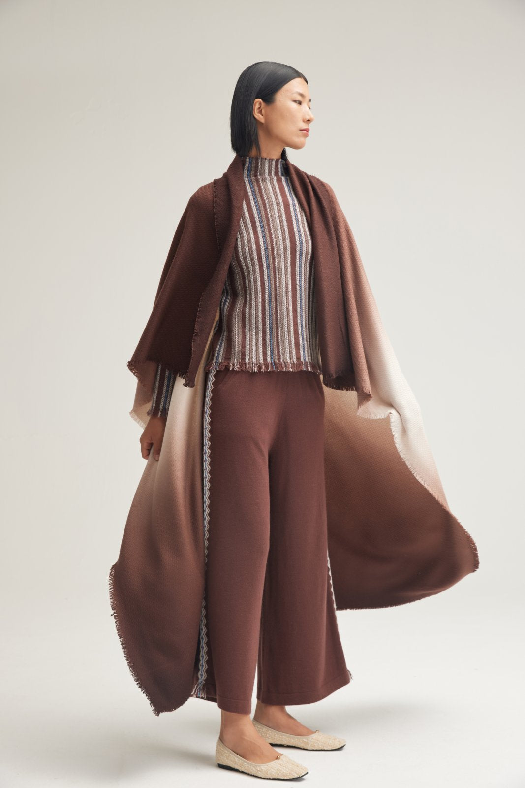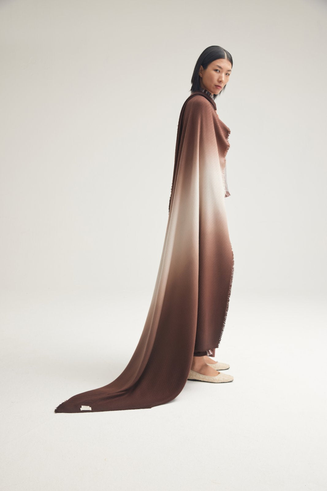 A large handmade cashmere blanket crafted using Tibetan traditional technology. This blanket features a two-color dyeing design with an environmental protection process, resulting in a natural color transition.